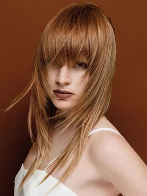Para las que tienen cabello corto y quieren usar extensiones o las que tienen cabello largo pero no se atreven a cortarlo este es ideal. El pelo en capas con un flequillo recto.